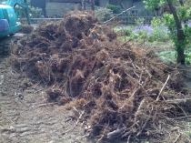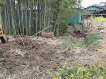 ![]() 竹の根を抜根しました。竹の根は厄介ですね、少しでも土中に残っているとまた出てくる可能性がある強い植物です。 |