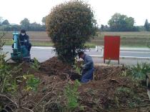 ![]() こちらは既存樹木移設(写真はキンモクセイ)です。こちらも同じく抜根・整地です。 |