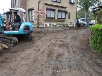 ![]() アプローチと駐車スペースの土を砕石100mm土間コンクリート100mm合わせて200mすき取りました。 |