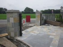 ![]() 門柱、アプローチ石貼りとコンクリート洗い出し仕上げが完成しました。 |