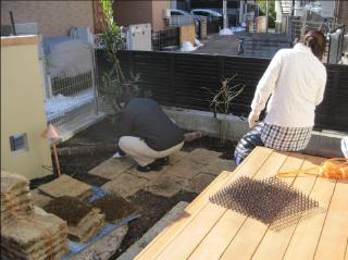 ![]() お 庭工事最後の工程日、ご家族揃って芝貼り施工に挑戦。ご主人、奥様、ご子息様、家族揃って芝貼りを体験いたしました。当初「お父さん頑張って」をご提案。 W様是非、体験したいとご要望があり貼って頂きました。もちろんプロ(スタッフ大沢)の失敗しない貼り方をレクチャーしました。家族で楽しく、ワイワイし ながら1時間位で作業が終了いたしました。 省管理型高麗芝TM9のご紹介はこちら |