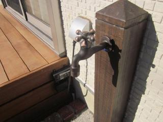 ![]() オリジナルの立水栓です。水栓柱は日本興業のレヴウットタイプを使用しナチュラルな雰囲気を出しました。 |