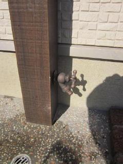 ![]() 補助蛇口(ホース専用)もブロンズ色で合わせました。ホースソケットが入り易いよう蛇口が外にむいています。少しでも使いよすようにご提案しています。 |