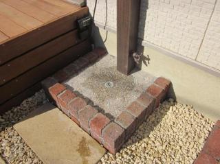 ![]() パンの部分は通常より高くしてあります。使用時にあまりかがまないよう工夫をしました。パン底は洗い出し舗装でオシャレな感じにつくりました。 立水栓の紹介や予算の目安はこちら 他の立水栓の設置例のご紹介はこちら |