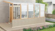 | 基本タイプ 全面がパネルの基本タイプ。パネルを全面・左右側面ごとに自由に開閉できます。床面はウッドデッキ仕様又は土間仕様になります。 間口2間(約364cm)×出幅10尺(約303cm) メーカー希望標準価格¥1,752,700 |